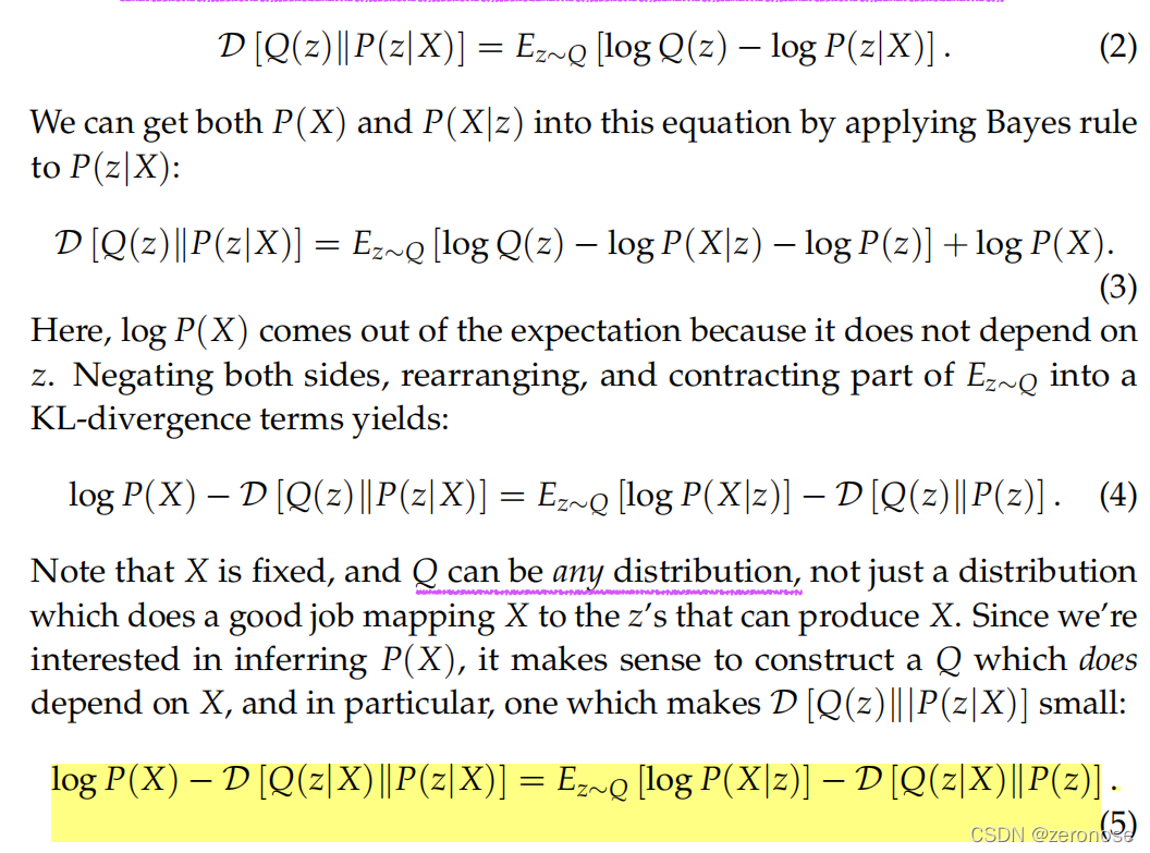 最后可以看到,公式5跟我们的推导最后的形式都是一样的,logP(X)=ELBO+KL
