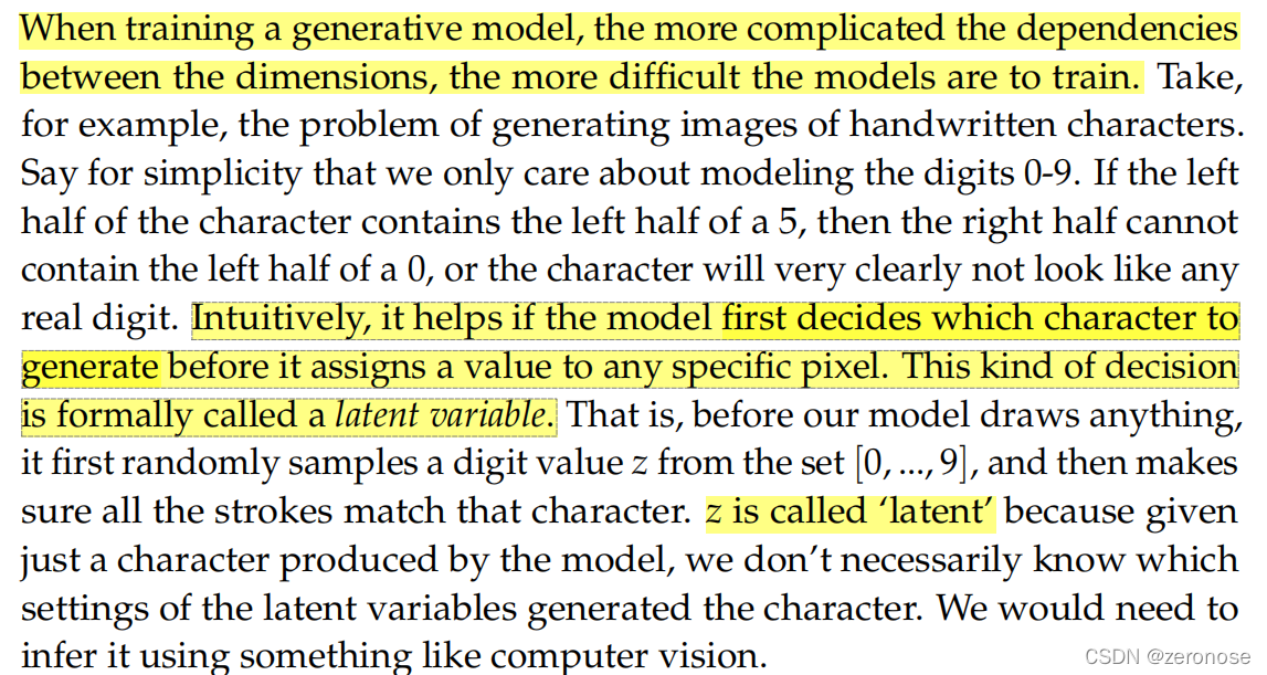 VAE原文中,对于隐变量z的引入,举了一个关于MNIST的简单例子,如下图,感兴趣的可以自己看看。