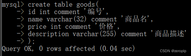 description varchar(255) comment '商品描述'