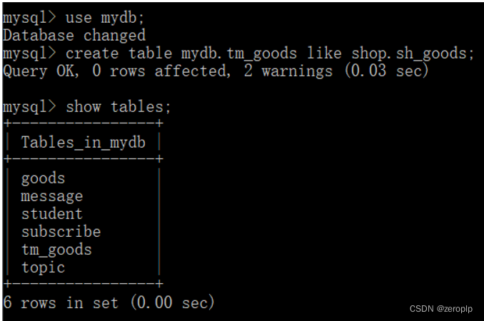 create table mydb.tm_goods like shop.sh_goods;