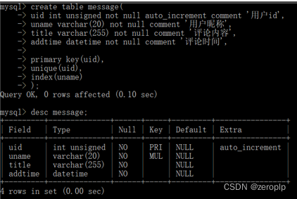 4.请设计一张留言表,用于保存网站留言版中游客发表的留言。