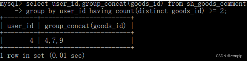 4、select user_id,group_concat(goods_id) from sh_goods_comment