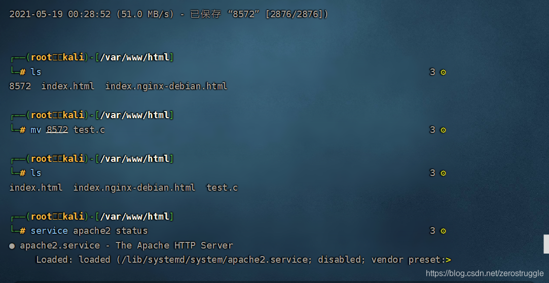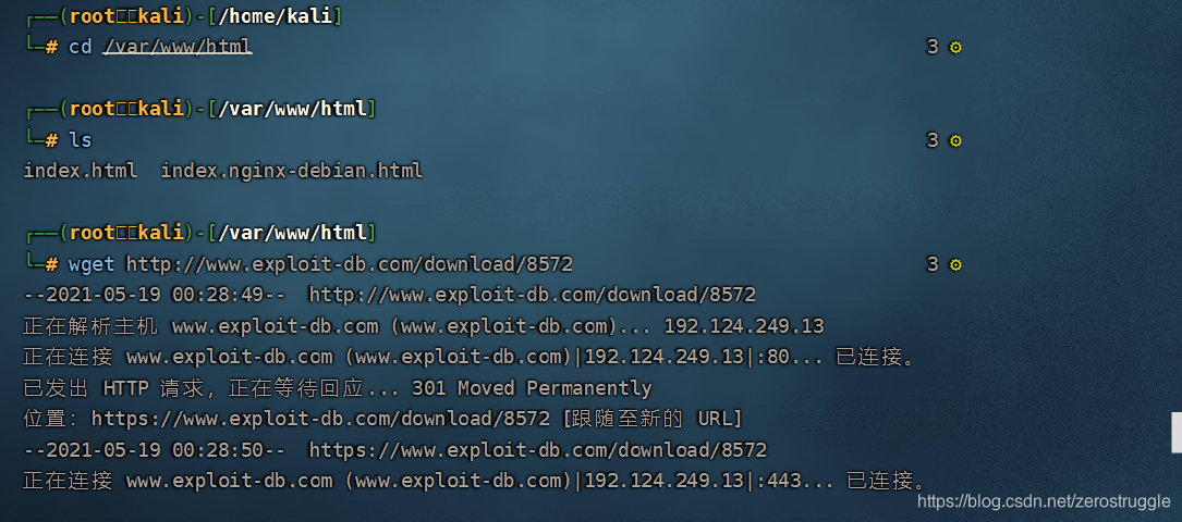 这里先是下载到了kali上 再利用靶机(此时已经利用telnet连接)通过apache2下载了exp