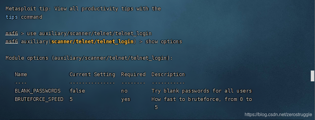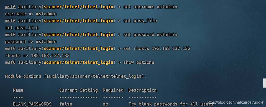 kali中启动 metasploit 利用telnet_login模块连接(这里假设知道账号和密码 不知道的话可以爆破)