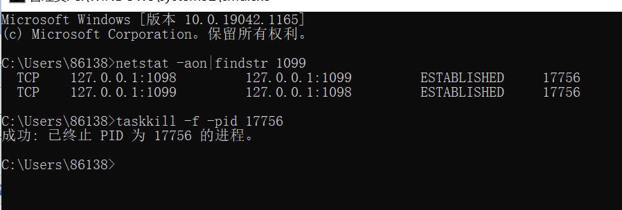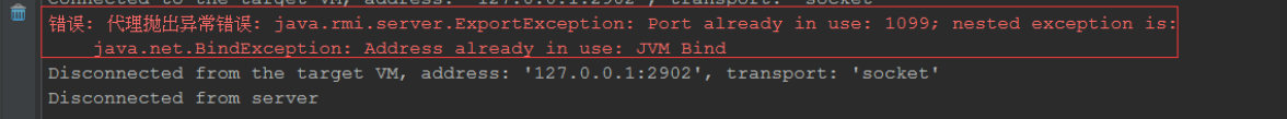 错误: 代理抛出异常错误: java.rmi.server.ExportException: Port already in use: 1099; nested exception is: