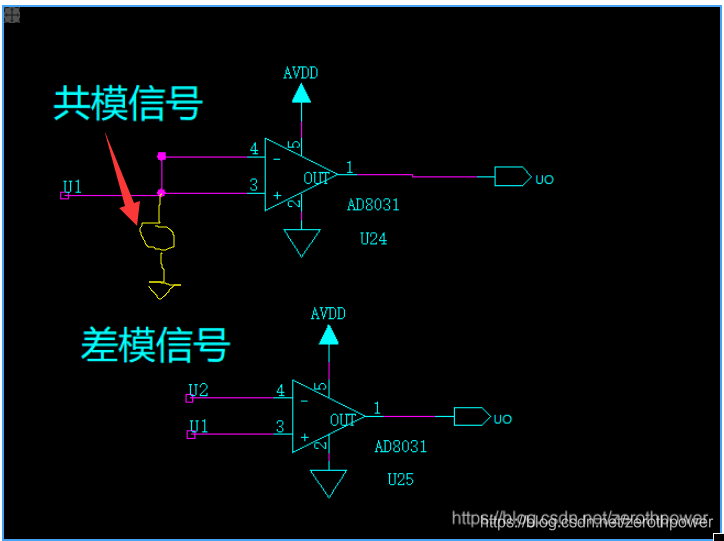 采用差分电路,将输入端短接,则差分信号为0V,只剩下共模信号。