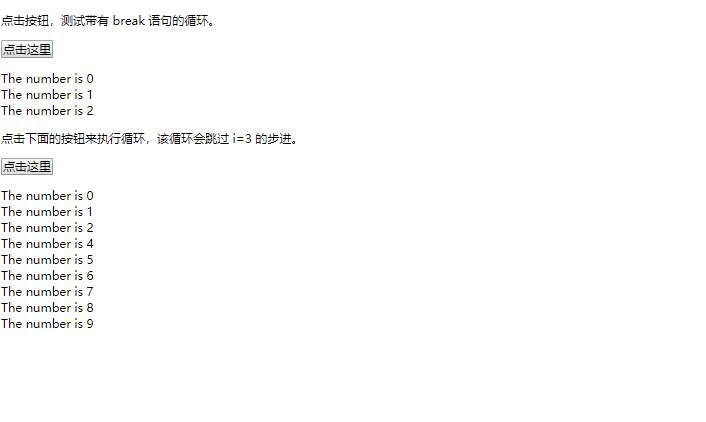 <p>点击按钮,测试带有 break 语句的循环。</p>