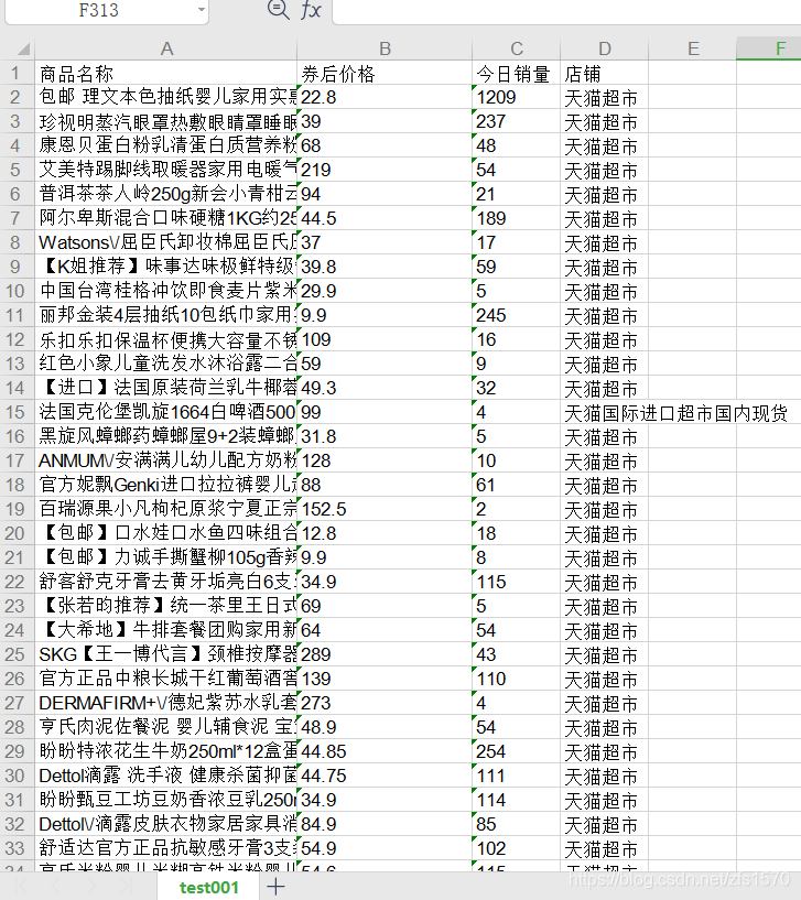 worksheet.write(0,1,"券后价格")