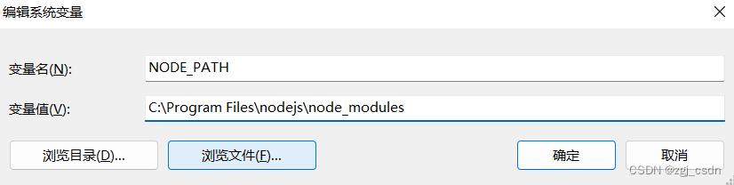 【系统变量】下新建【NODE_PATH】,输入【C:\Program Files\nodejs\node_modules 】