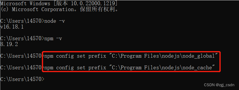 执行命令,将npm的全局模块目录和缓存目录配置到我们刚才创建的那两个目录