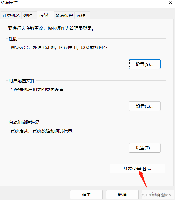 ps:可能根据系统不同,位置稍有差异,实在找不到你就在下方搜索框里搜“环境变量”,总之是下方的界面;