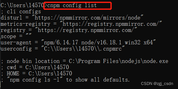 验证:cnpm config list