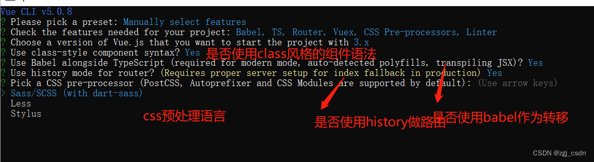 5.前几个直接yes,最后一个选自己习惯的css预处理语言