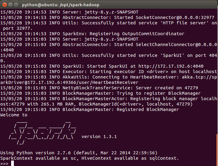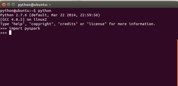 前面已设置PYTHONPATH,将pyspark加入到Python的搜寻路径中