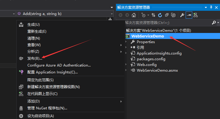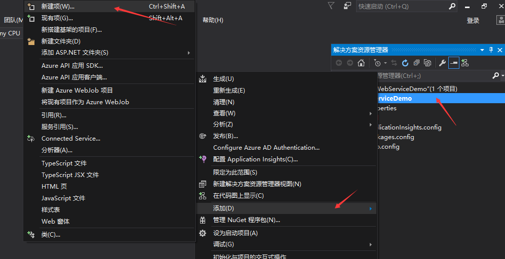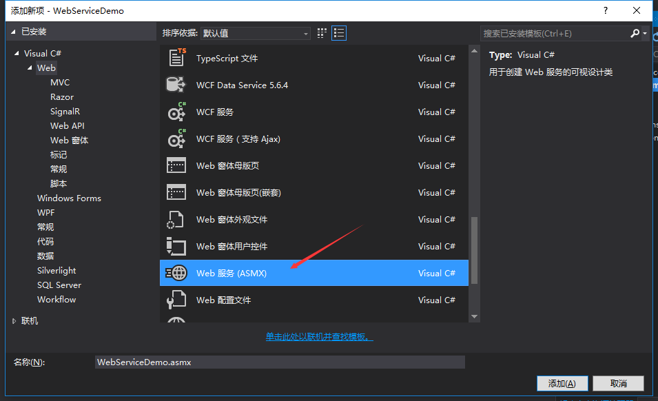选择Web服务,点击添加。一个简单的webservice就创建完成了,接下来编写两个简单的方法。