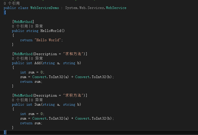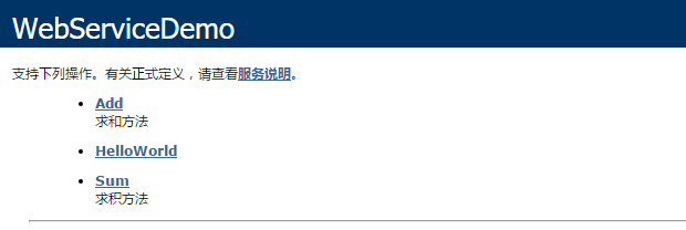 PS:如果方法需要通过webservice的地址进行调用,那就必须在方法上面打上 [WebMethod] 的特性标签,否则是无法通过webservice访问到的。Description 是方法的描述。