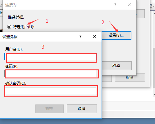 然后选择特定用户,点击设置,输入本机的用户名和密码,点击确定就可以了。然后可以点击测试设置看看效果。