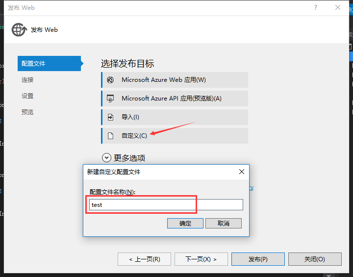 选择自定义,然后输入配置文件名称,然后点击下一步。