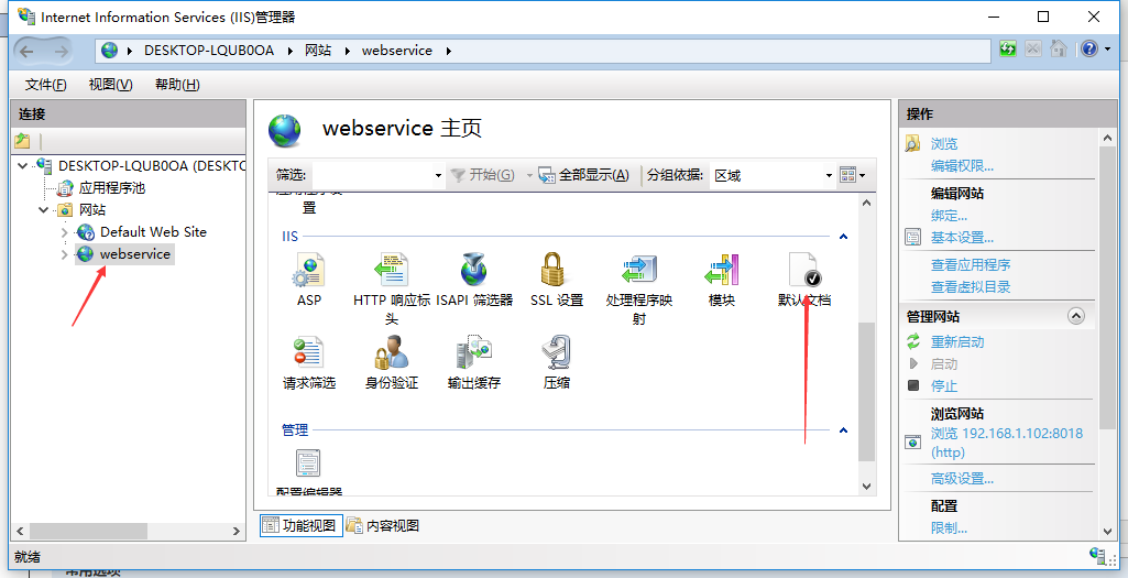 开启 IIS 之后,先把刚才的 webservice 发布之后,然后打开 IIS 管理器。