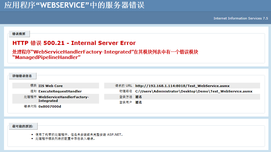 这个错误的原因是在安装Framework v4.0之后,再启用IIS,导致Framework没有完全安装。