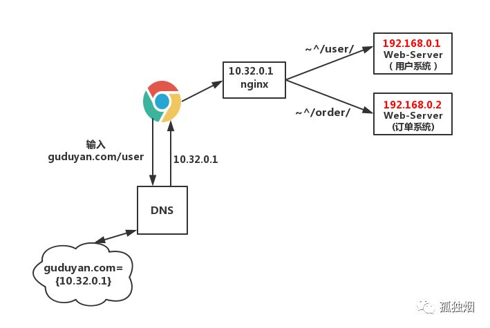 输入guduyan.com/user/的时候定位到用户系统。输入guduyan.com/order/的时候定位到订单系统。