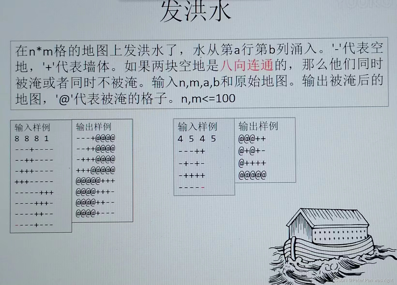 博客介绍了DFS和洪水填充算法。洪水填充算法用于确定多维数组中与给定节点相连的区域。给出了四方向的解决方法,通过特定数组表示方向,输入坐标可输出其四个方向连通的坐标,还提供了实践机会。