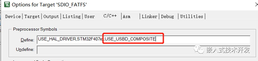 a)首先,原有的工程已经有USB复合设备的框架了,要使用的话需要添加一个宏定义:USE_USBD_COMPOSITE,直接在编译器里添加就行: