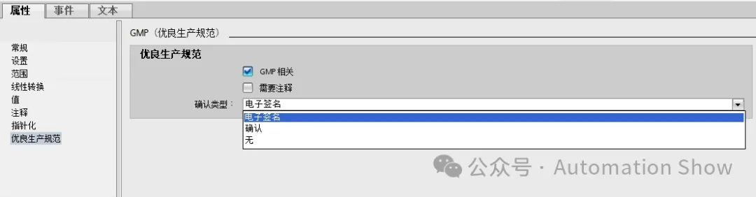 在变量的“属性à优良生产规范”选项卡中启动“GMP 相关”选项。