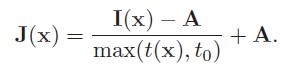 I是指观测到的图像的强度,J是景物光线的强度,A是全球大气光成分,t用来描述光线通过媒介透射到照相机过程中没有被散射的部分,去雾的目标就是从I中复原J,A,t。