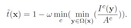 (上边这个公式好像应改为:min(c)应与min(Omg)互换, 先求单个像素min(rgb)的值,然后再求min(Omg),即区域最小值)
