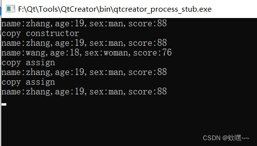该代码定义了一个Person类,包括姓名、年龄、性别和一个指向整型分数的指针。类中实现了默认构造函数、带有参数的构造函数、拷贝构造函数(深拷贝)和拷贝赋值运算符(深拷贝)。在主函数中创建Person对象并展示了如何使用这些功能。