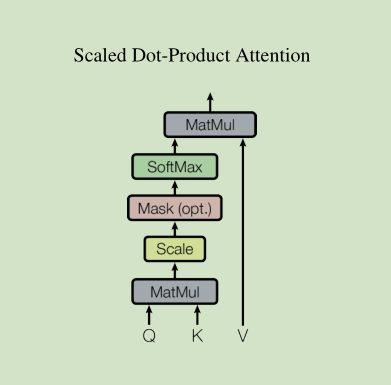 Attention(Q, K, V) = softmax(\frac{QK^T}{\sqrt{d_k}})V
