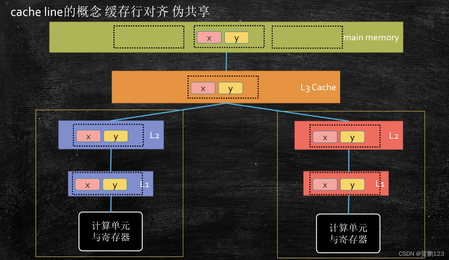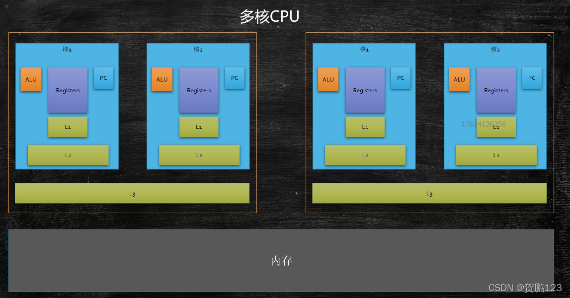 CPU每次去内存里面读写数据太慢了,为了更快的读写数据,所以CPU在自己家里加了一层缓存,每次都是先从自己的缓存读写数据,这样CPU的利用率又提高了,所以下图的内存不是电脑的内存,cpu自己的内存测试
