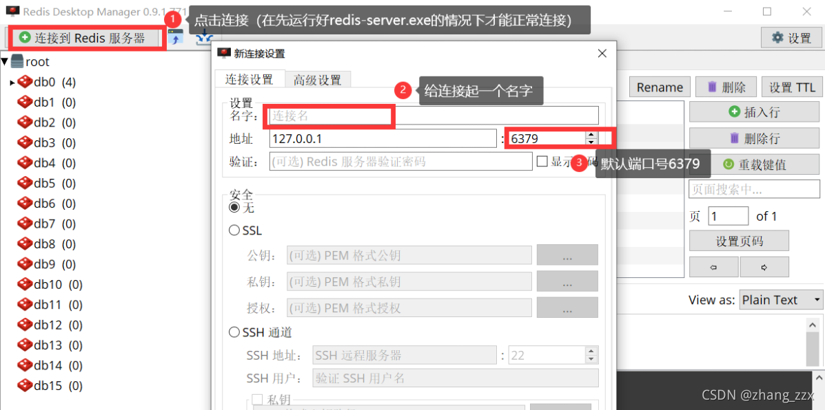这里选择的是Redis 5.0.14 (a7c01ef4/0) 64 bit版本的数据库,可视化工具选择的是