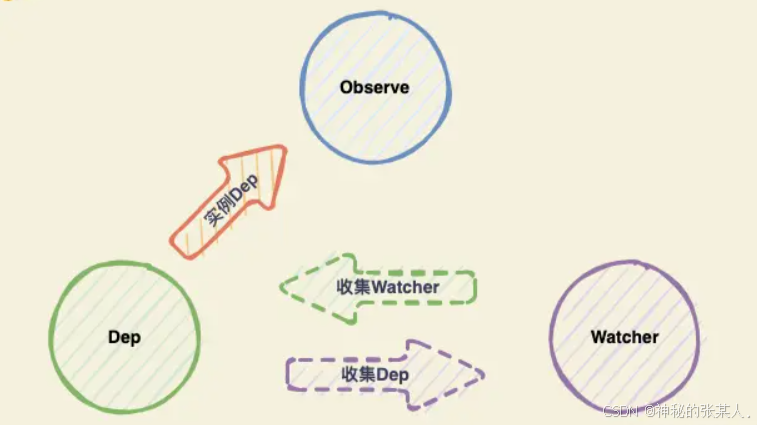 这里会从observe、dep、watcher 三个对象进行讲解,分object、array两种依赖收集方式。