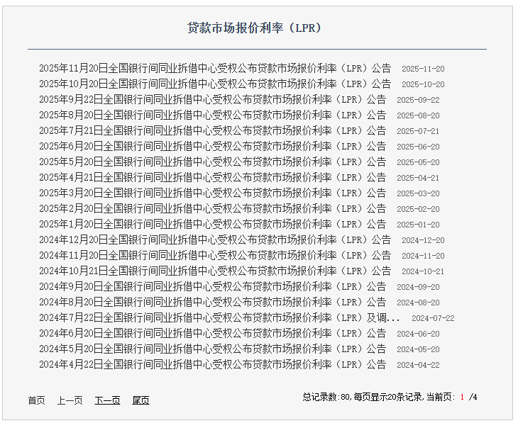 其中,LPR(贷款市场报价利率)是各大银行或机构借贷参考的一个很重要的参数,是由中国人民银行定期进行公布的,查看单个的话可通过登录中国人民银行官网进行访问。