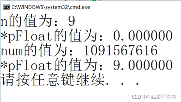 printf("*pFloat的值为:%f\n",*pFloat);