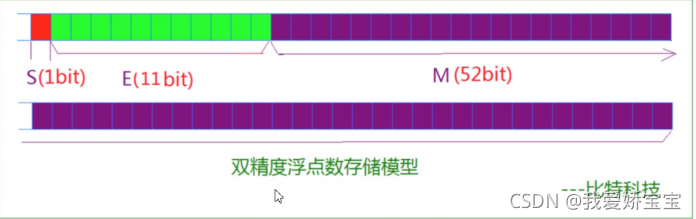 S,接着的11位是指数E,剩下的52位为有效数字M。