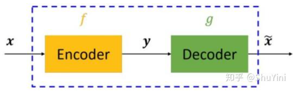 第一个网络是一个编码器,负责接收输入 x,并将输入通过函数 h 变换为信号 y:
