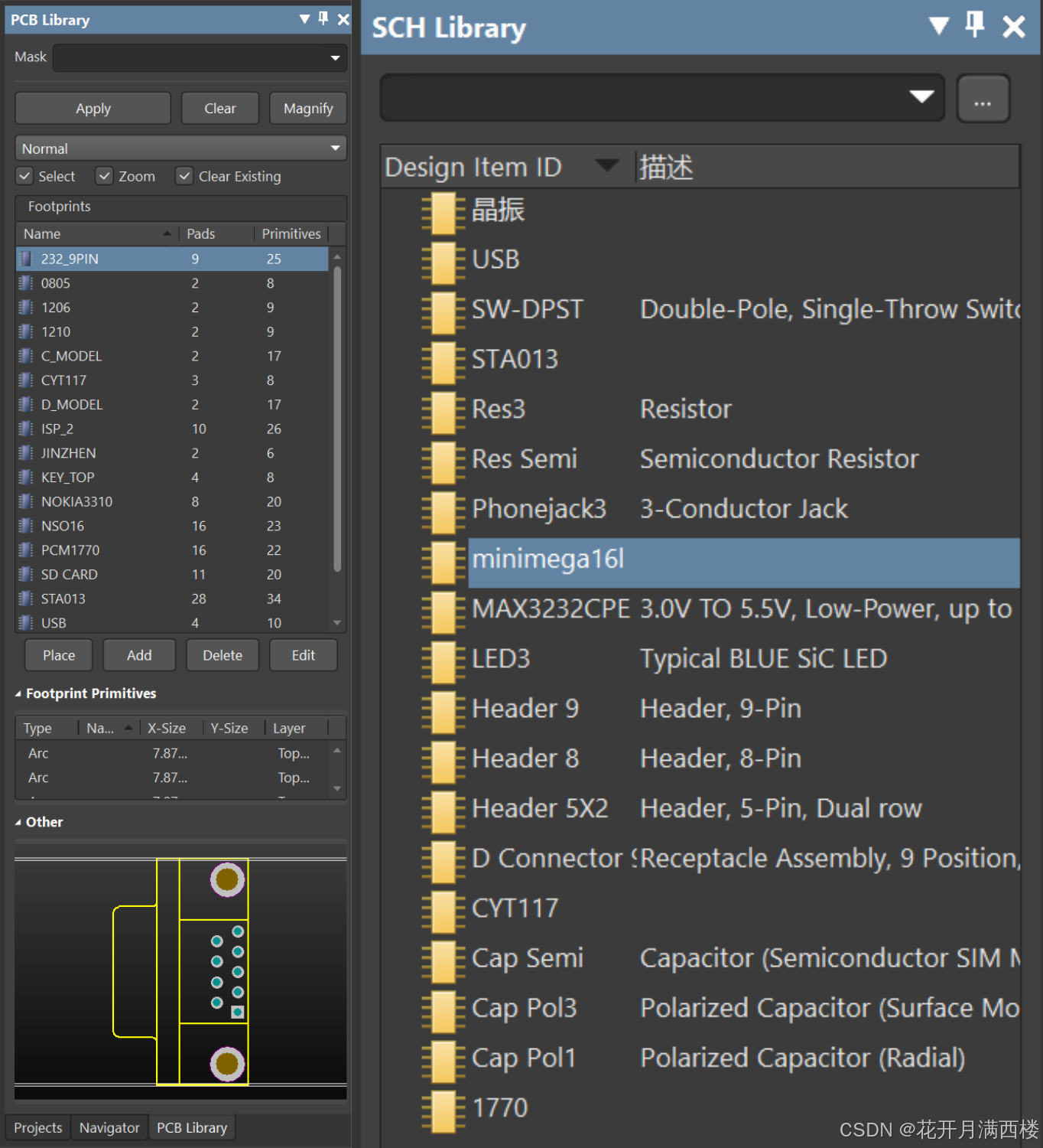 上述工程中的PcbLib和SCHLIB设计如下(展示部分):