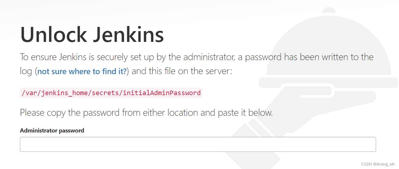 第一次安装产生的密码可在文件/home/jenkins_home/initialAdminPassword中查看,记录密码文件在Jenkins安装成功后24小时后会自动删除,所以安装成功以后一定要记得及时修改密码。