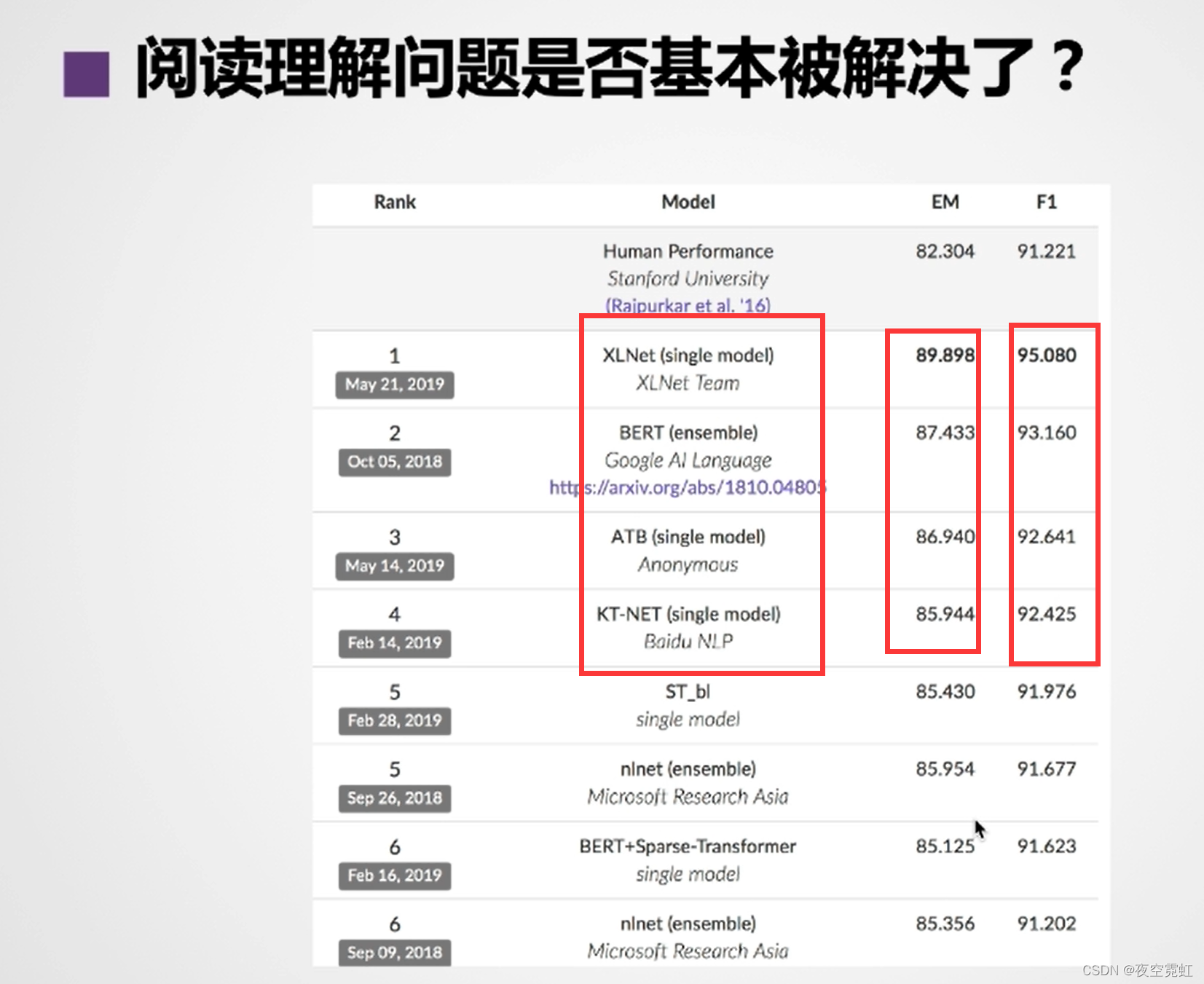 随着PLM模型提出,SQuad上的performance已经很高了。