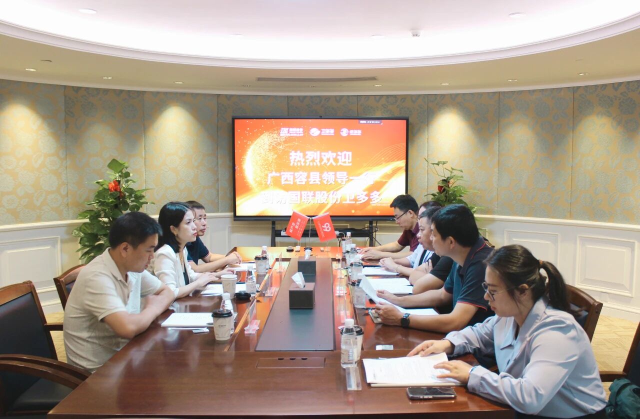 2025年9月26日,广西容县县长吴厚强、副县长林彦文等一行到访国联股份卫多多,国联股份副总裁、卫多多/纸多多CEO黄莎莎等热情招待来访一行,并展开深入交流。