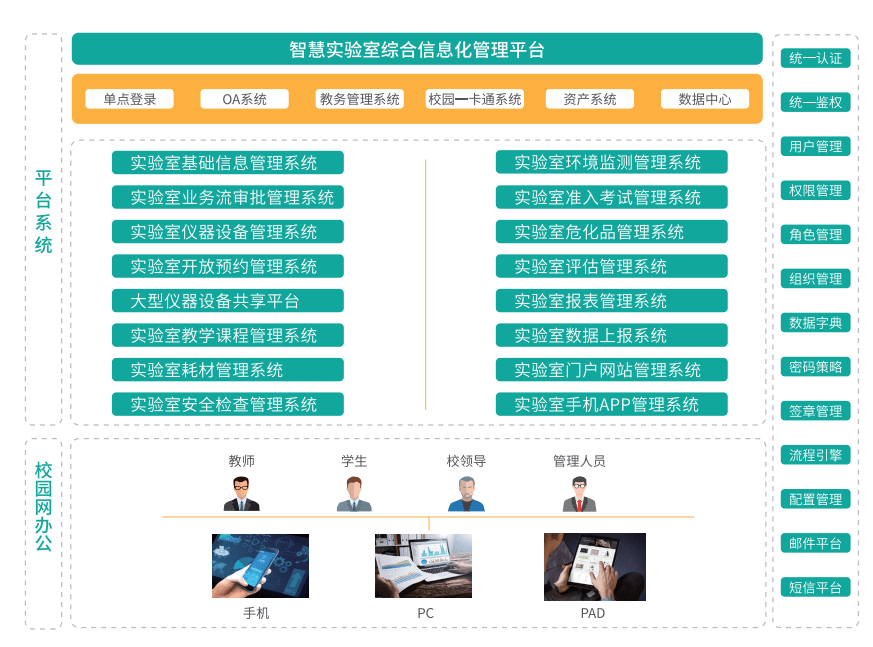 整个系统平台整合了实验室与实践教学及其相关工作的业务流程,其内容涵盖了实脸室建设.实验人员、实验用房、实践教学、开放实验.实验室开放、实验预约、实验课表、实验考试、实验成绩、实验门禁、视频监控.、设备耗材、大型仪器共享、数据上报、实验办公等元素是一套信息高度共享、使用方便.、功能強大、使用稳定的管理信息系统软件.可极大的提高实验室管理水平和实践教学质量。