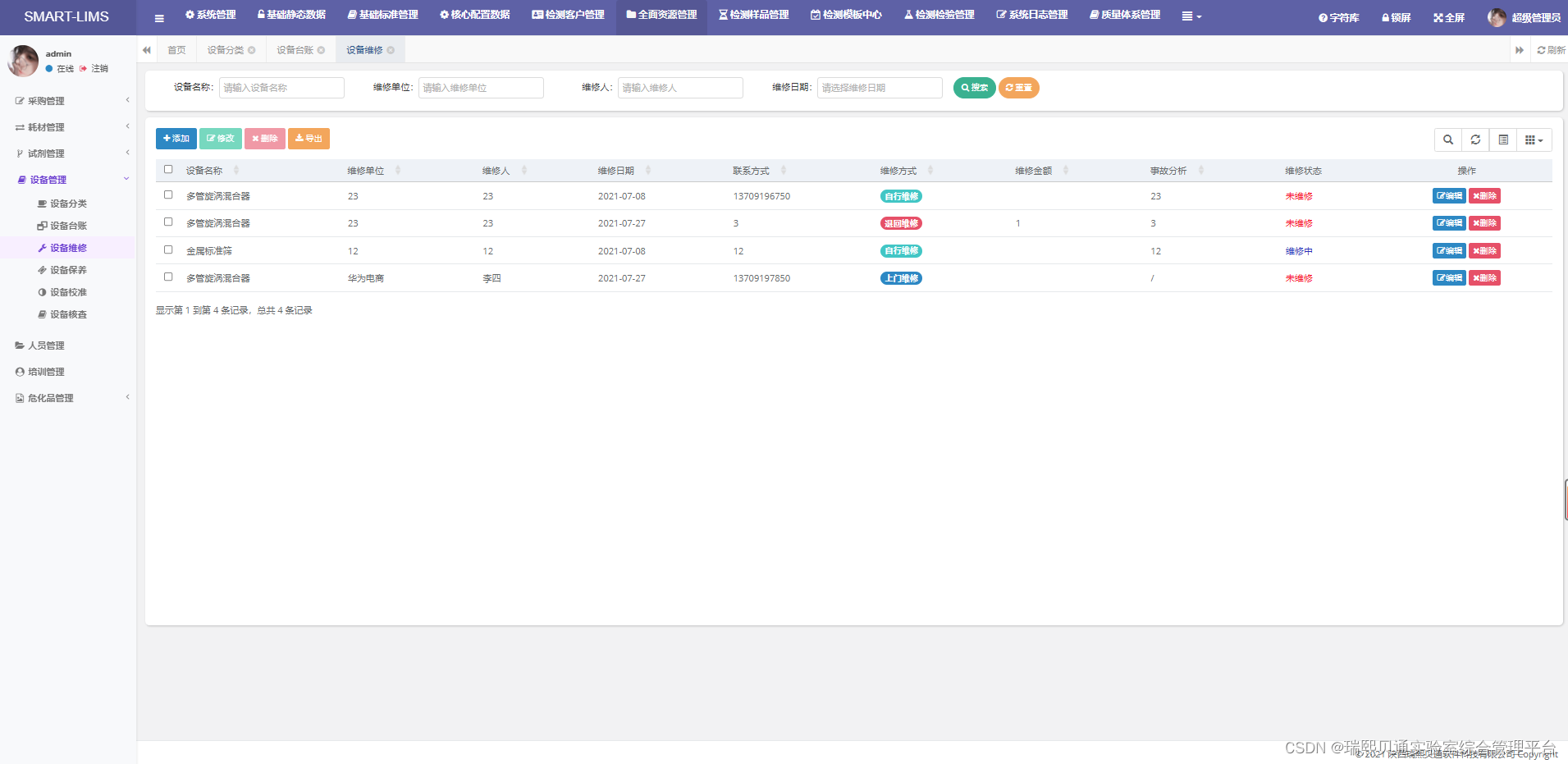 文章介绍了基于SpringBoot框架构建的高校实验室仪器设备管理系统,强调了系统的需求分析、设计和测试过程。系统包括设备分类、台账、保养、校准、维修等多个管理模块,旨在提升管理效率。此外,还提到了瑞熙贝通实验室信息化管理软件,它提供Web端和移动端解决方案,实现设备全生命周期管理,并具备安全稳定、可扩展和开放性等特点。