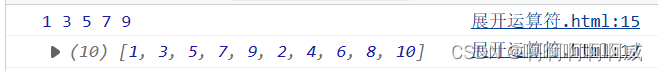 如下两个数组,展开运算符可以将一个数组中的每一项展开显示,也可以将两个数组拼接在一起成为一个新的数组。