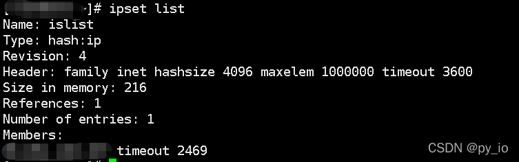 ipset create blacklist hash:ip hashsize 4096 maxelem 1000000 timeout 3600