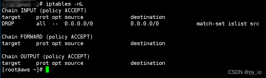 #创建一条IP地址集。参数(hash:net)是必须的,代表的是集合的类型,hash:net类型的IP集使用哈希来存储多个CIDR块