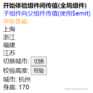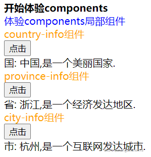 体验Vue.component注册全局组件,components注册局部组件,父组件向子组件传值,子组件向父组件传值,同级组件之间传递值。