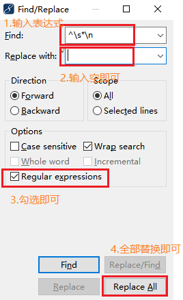 场景: eclipse删除空行,为了格式化代码步骤: 1.在代码编辑器 Ctrl + F 2.出现对话框如下设置即可